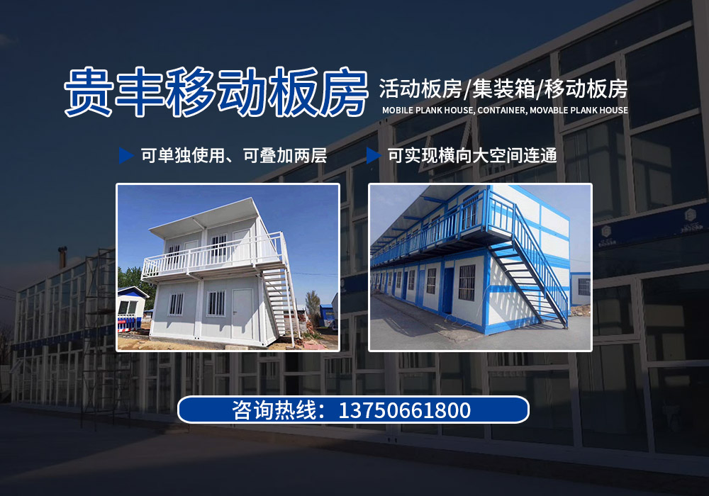 臺州貴豐移動板房有限公司從事集裝箱移動住房研發、生產、銷售與租賃等為一體的綜合性制造型企業。貴豐移動房為滿足工程項目簡單住宿、辦公而研發的組合式集裝箱移動房,該產品可單獨使用、可疊加兩層、也可實現橫向大空間連通,作為大空間辦公室、會議室、食堂等功能使用。 產品被廣泛適用于工地工廠住房,拆遷過渡房,應急辦公室,值班崗亭,門面房,樓房建筑類、高速公路類、高速鐵路類、軍工工程類、救災安置房類、鋼結構組合房類、特種鋼結構組合房等戶外作業領域。另可根據客